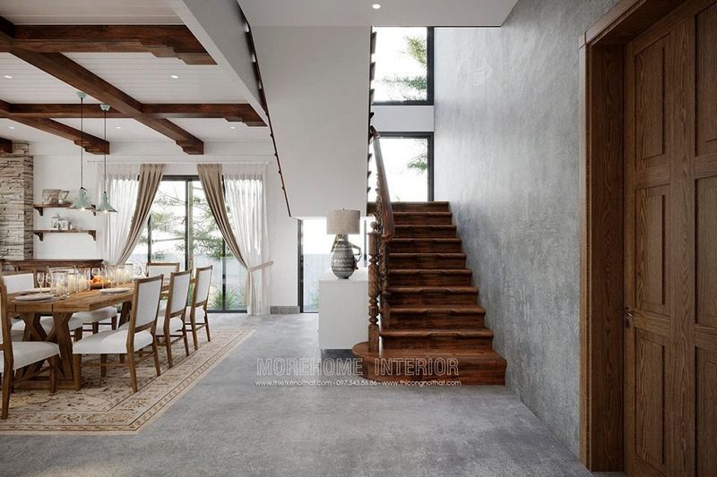 Mẫu cầu thang được làm từ gỗ tự nhiên, từ tay vịn, vẻ bản ngoài mộc mạc gần gũi nhưng vẫn đầy sang trọng. Từ cổ bậc đến mặt bậc, tất cả đều được thể hiện rõ ràng.